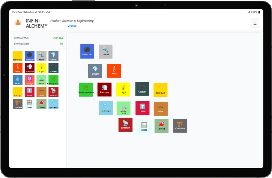 Are you looking for a fun and engaging game that can also help you learn new words? Look no further! Infini Alchemy is a creative alchemy game where you can combine basic elements like Water, Fire, Earth, and Air to discover a vast world of new items.